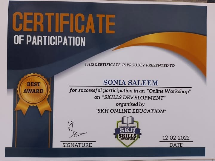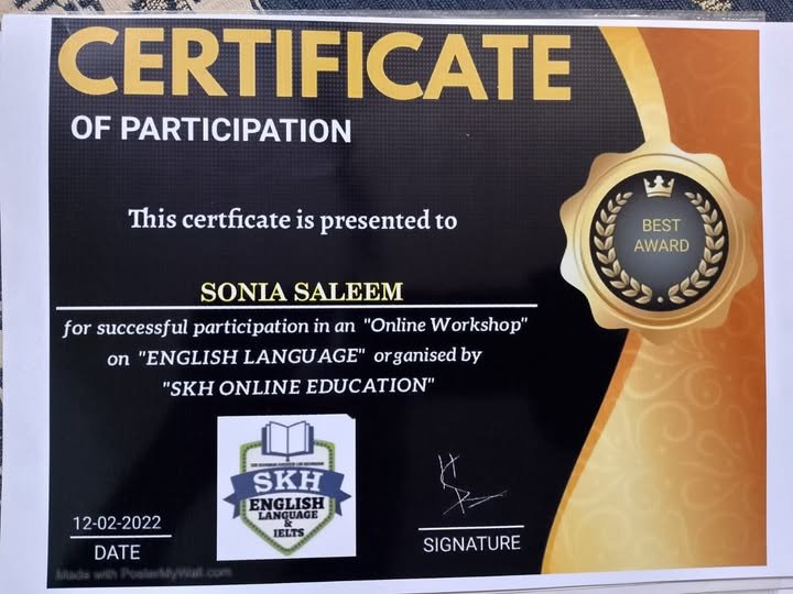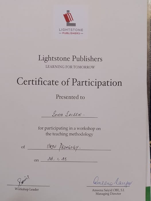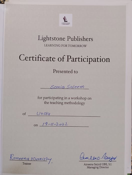 I’m Sonia Saleem A Teacher in The Educator school and i have done graduation Social Science in 2020.i have Six month experience at DUA special school and Six years experience at The educator school.